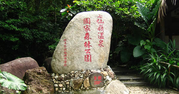 著名的七仙岭温泉在七指岭南面山脚下。这儿是一片低洼地,峻峭七峰为屏,背枕青山,胶林如海,椰林婆娑,槟榔亭亭,红棉披绸,野花飘香;温泉热气袅袅升腾,如云似雾,有如天宫瑶池。整个温泉区约有一平方公里宽,分布着25个温泉眼,水温大多数在70摄氏度左右,有些高达100度。在温泉区的北侧,有一个天然形成的巨大的温泉池,面积约有3亩,水深齐腰,水温适中,宜人沐浴。此泉池之水是由两股热泉和一股冷泉汇合而来,池畔有两株姿态奇异的老树,一似河马游于水中,一似仙鹤翘头伫立。池面热气蒸腾,宛如纱帐轻轻笼罩,极为奇特。在温泉区的另一方,有一热一冷的两股泉水汨汨而流,在什那溪中游汇合在一起,使得这段溪水的温度长年保持在30摄氏度左右,正宜人们沐浴游泳。